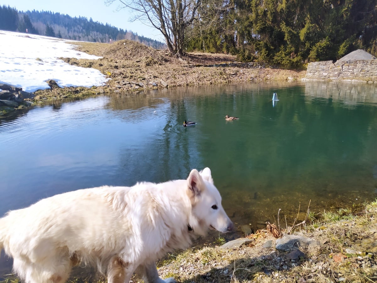 ~ przepływowy, duży staw z zimną nawet latem wodą (idealne miejsce dla miłośników morsowania),
