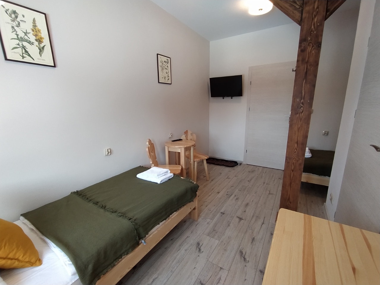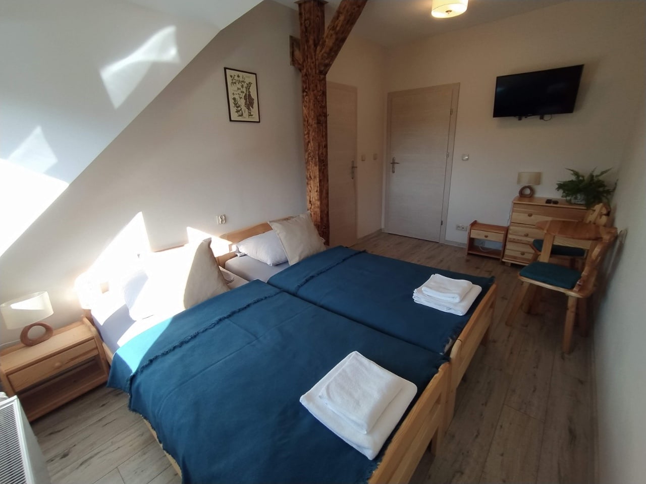 Dziewanna to przytulny, dwuosobowy pokój położony w zachodniej części budynku, z którego można podziwiać słońce zachodzące w Górach Orlickich.