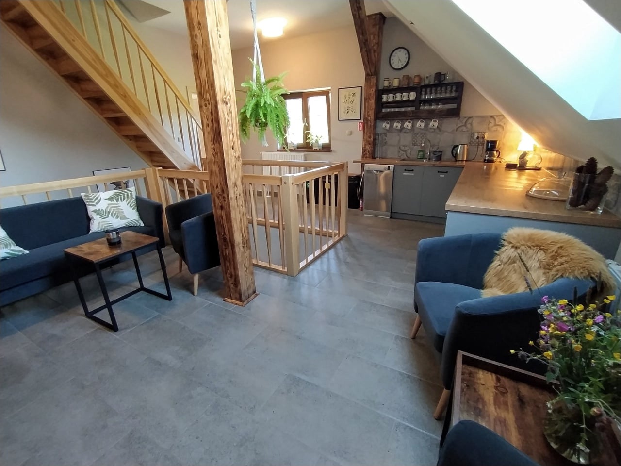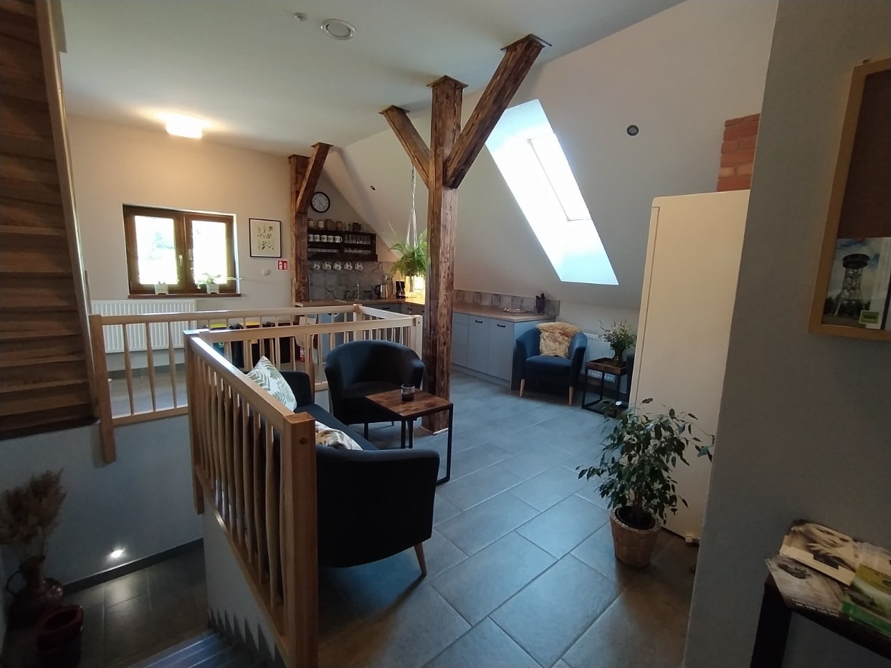 Do aneksu należy również część wypoczynkowa, w której nasi goście w spokoju mogą napić się gorącej kawy lub herbaty, a także zaplanować kolejny dzień.